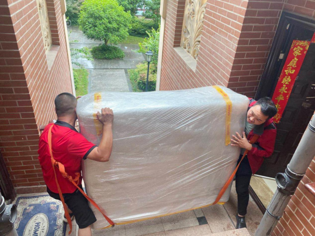 ②鋼琴在搬運時一定要均勻受力,由于鋼琴的體積較大,因此通常需要3-4個男士合力將鋼琴平移搬運至貨車上。